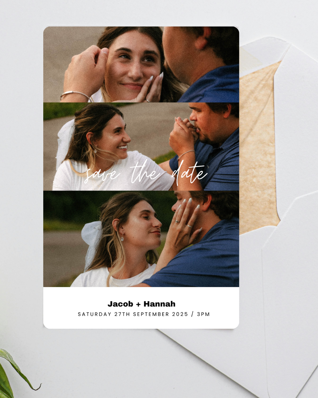 - Three-Photo Layout: Feature three of your favorite engagement or couple photos.